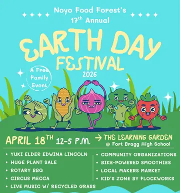 April 18 at the Learning Garden on the Fort Bragg High School Campus. 12 – 5pm.